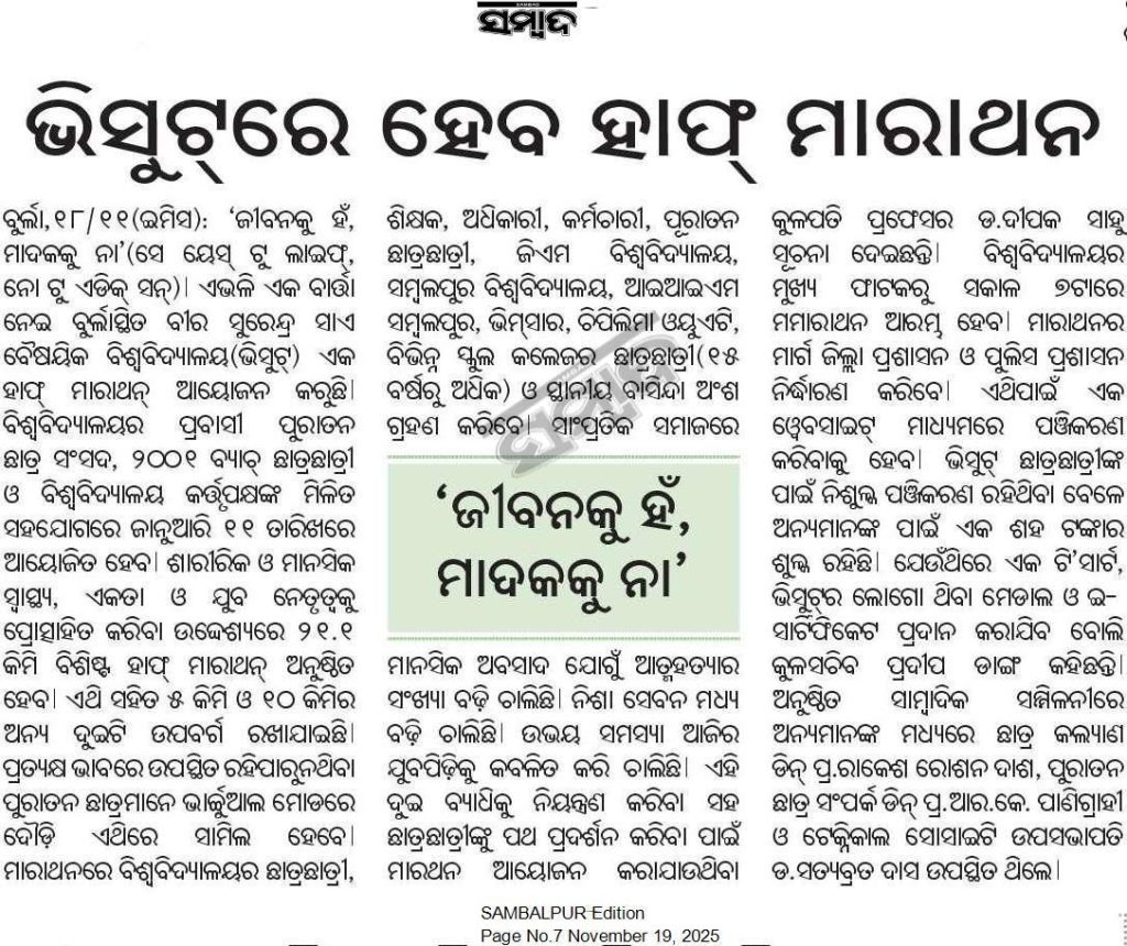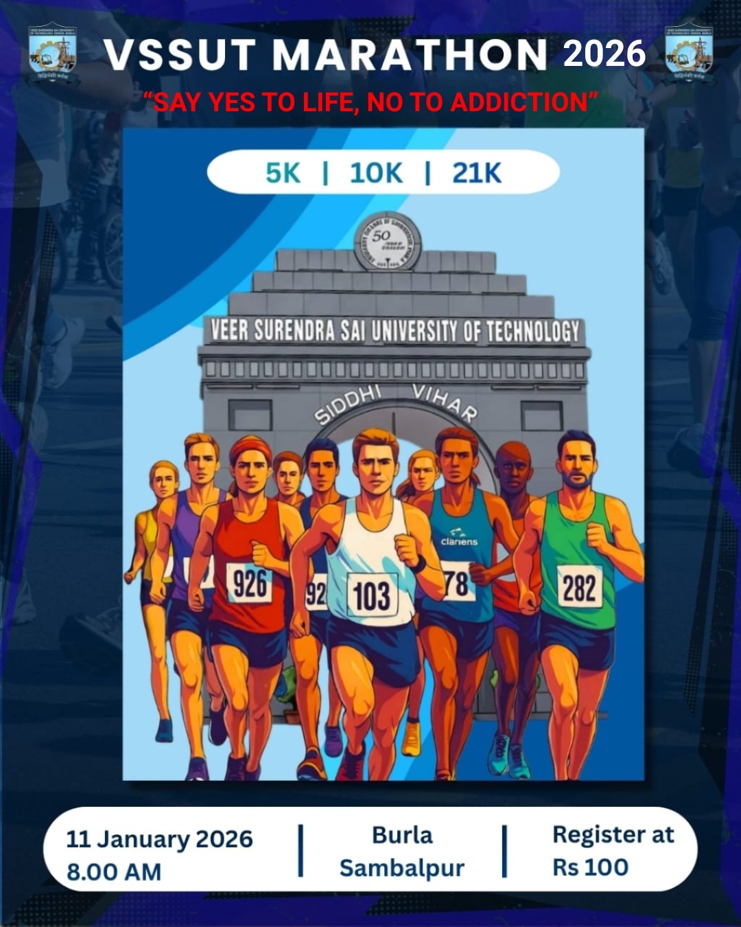 Join us as we run together to inspire fitness, strengthen unity, and celebrate the indomitable VSSUT spirit. Let’s make history — one stride at a time!